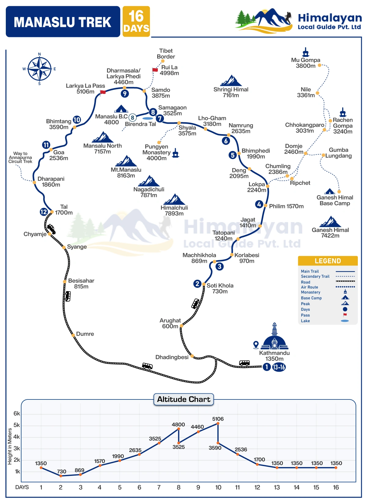The main purpose is to cross the Larkya La pass (5106m). Which is the high pass in the Manaslu region. However, the surroundings of the Himalayas range from the top is astonishing. The best views of mountains like MT. Manaslu, Annapurna II, Samdo Peak, Larke La peak, Himlung, Nemjung etc.