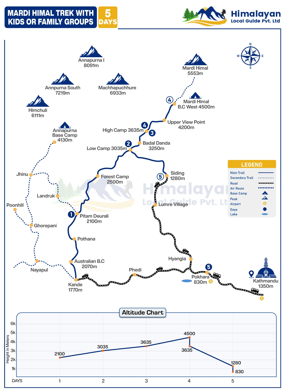 The Mardi Himal trek route offers several route options, each with its own tourist attractions and encounters. Our sample itinerary is the most family-friendly trek route, considering factors such as trail conditions and accommodation services. Our overviews help you make an informed decision about the best route that meets your family's preferences and abilities.