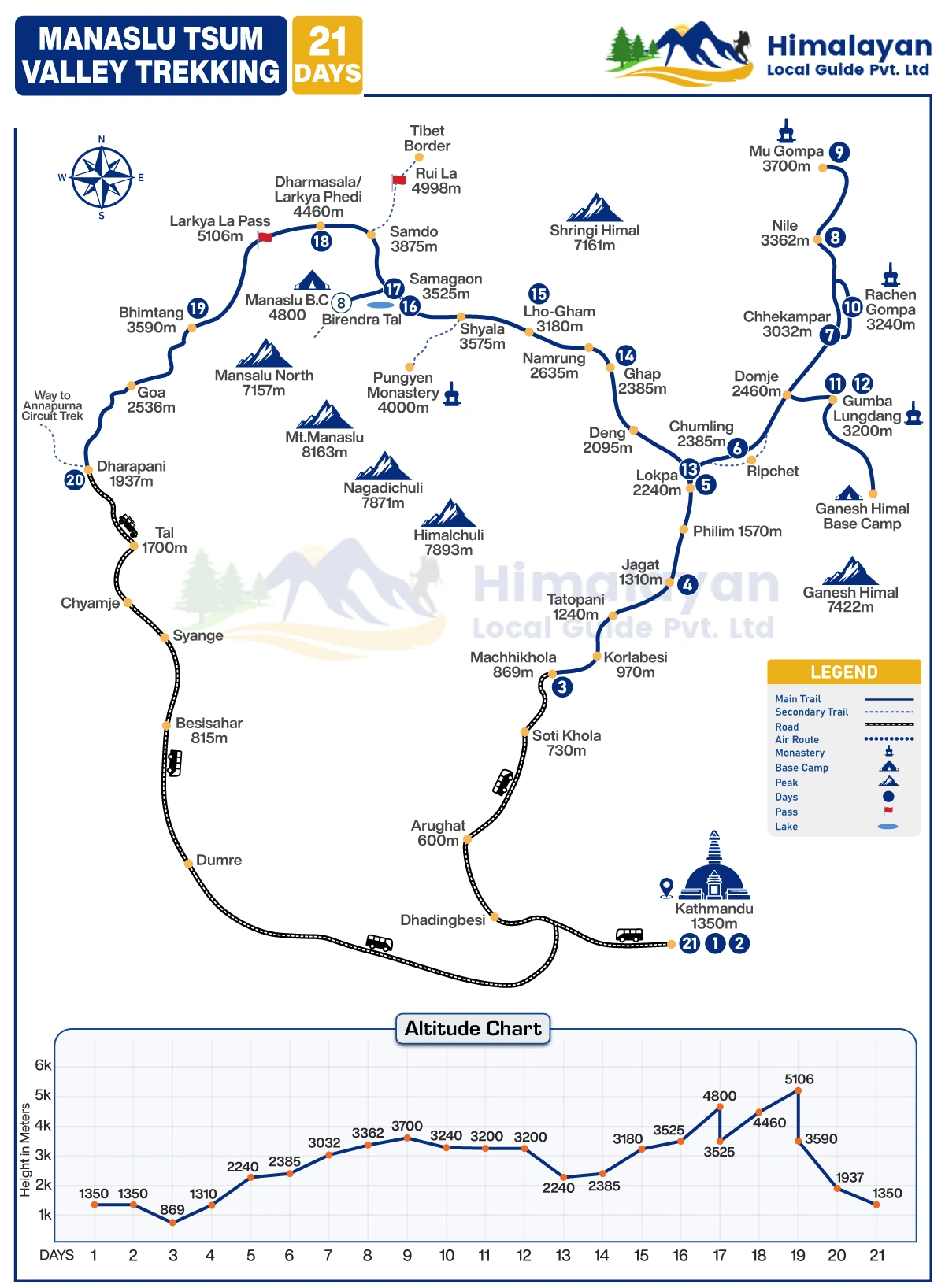 As we are offering, if you are looking for a superior challenge or if you would like to spend a few additional days in the Nepal Himalayas, Himalayan Local Guide Pvt. Ltd is proud to present a mass of alternative routes for you to think about. Travelers/Trekkers extra time to additional will find our Trip packages to Manaslu Circuit Trek, Manaslu, Annapurna Circuit Trek, and Tsum Valley Trek - 12 Days.