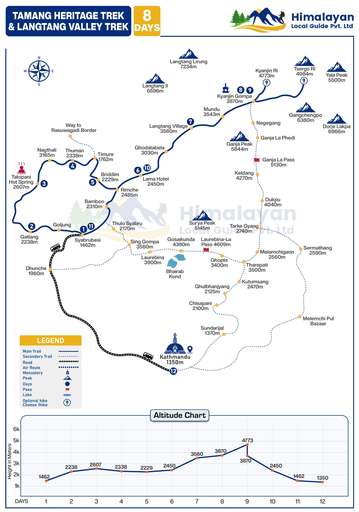 The Tamang Heritage Trail & Langtang Valley trek is a moderately difficulty trek in the Langtang National Park of Nepal. As this trekking is combined with two trek routes in the Langtang trekking region, you will spend 11 nights and 12 days in the Himalayas.